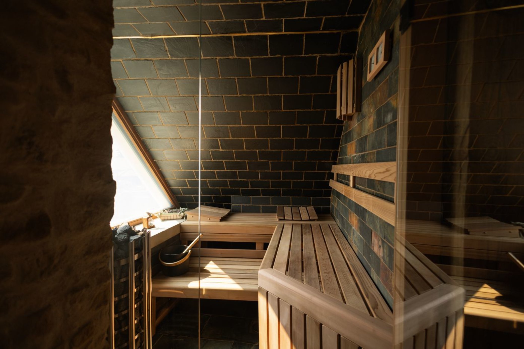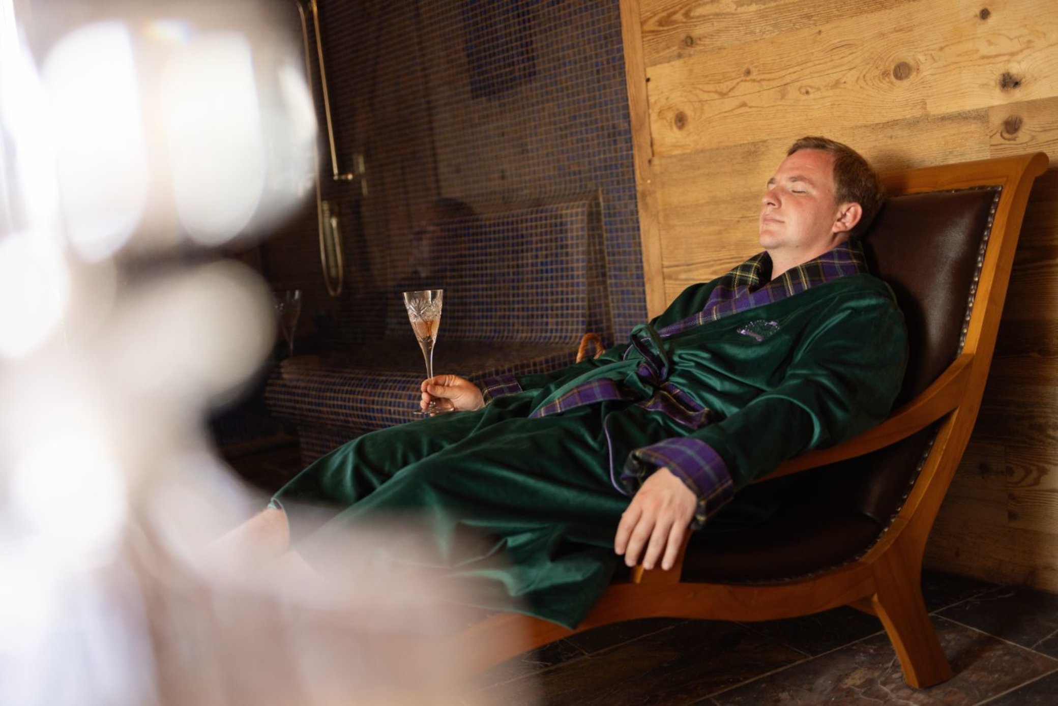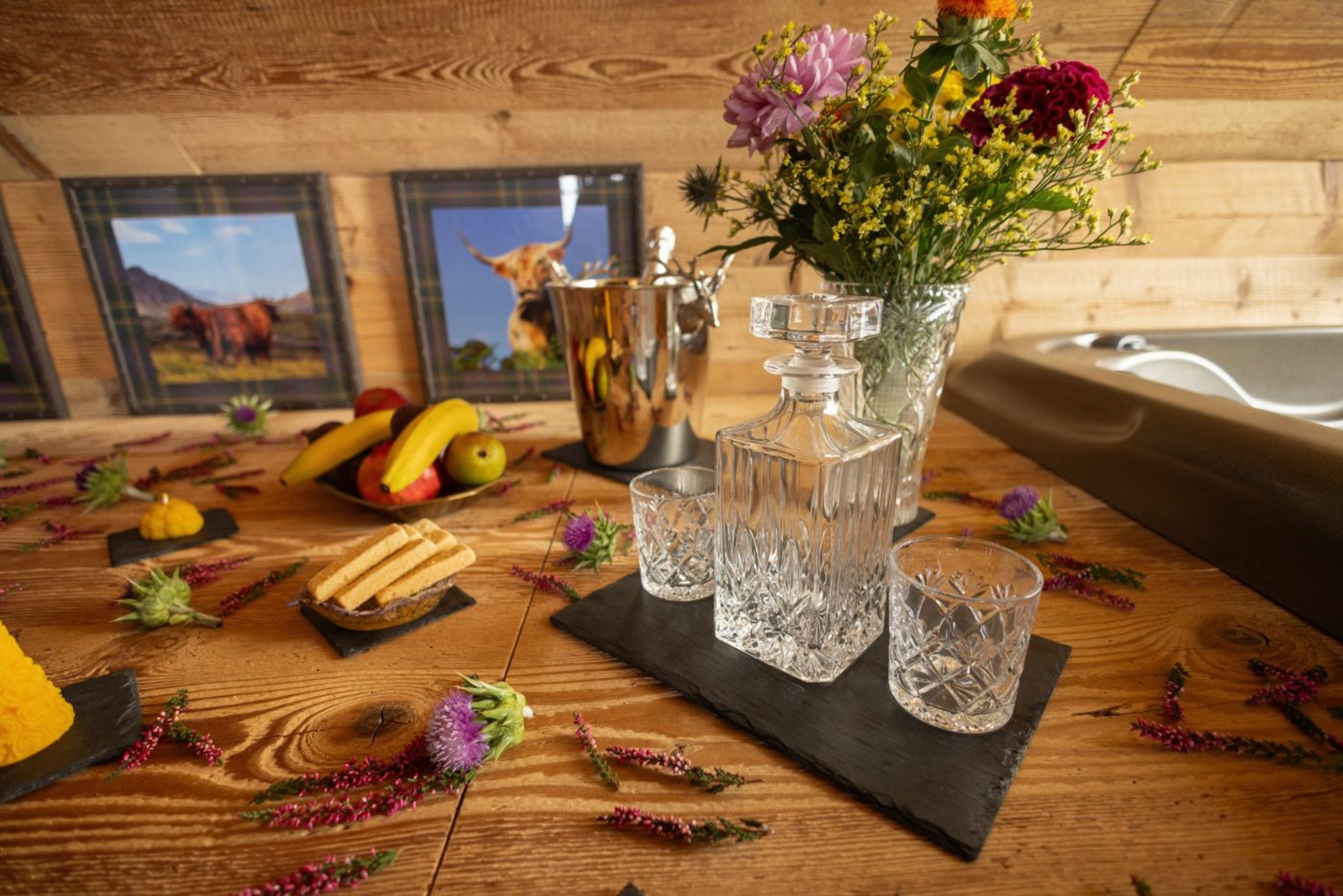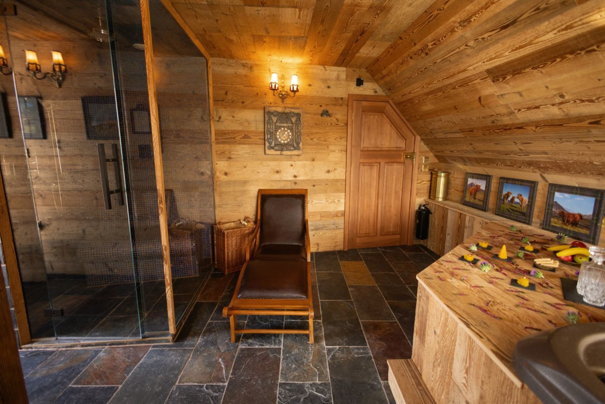 Po příchodu vás čeká krátké seznámení s prostorem privátního wellness a poté už je vše jen na vás, za zavřenými dveřmi. Prohřejete tělo ve finské i parní sauně, ponoříte se do vířivé vany s výhledem na pastviny a necháte se unášet atmosférou otevřeného krbu, jehož plameny můžete pozorovat z vířivky i obou saun. Kdykoli můžete vyjít na venkovní terasu a vychutnat si ticho, vůni vřesovců a zvuky skotského venkova, případně si odpočinout v ložnici.