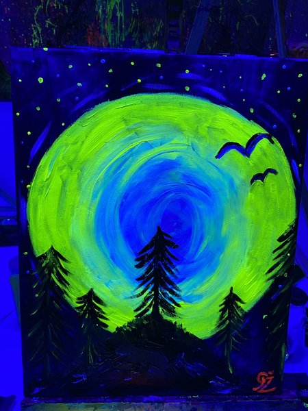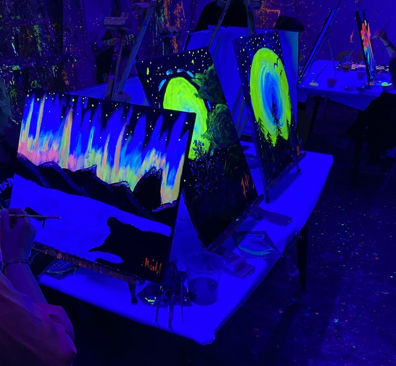 Poté co dorazíte na místo, dostanete do ruky uvítací drink, oblečete si zástěru, sednete si před plátno, zhasne se… a pak už jen popustíte uzdu své fantazii a budete sledovat, jak se bílé plátno před vámi mění ve svítící neonové dílo pomocí barev se světélkujícími pigmenty. Když si nebudete vědět rady, vždy vám bude po ruce zkušený lektor. Domů si kromě vzpomínky na příjemný večer ponesete výtvor, který rozzáří váš domov!