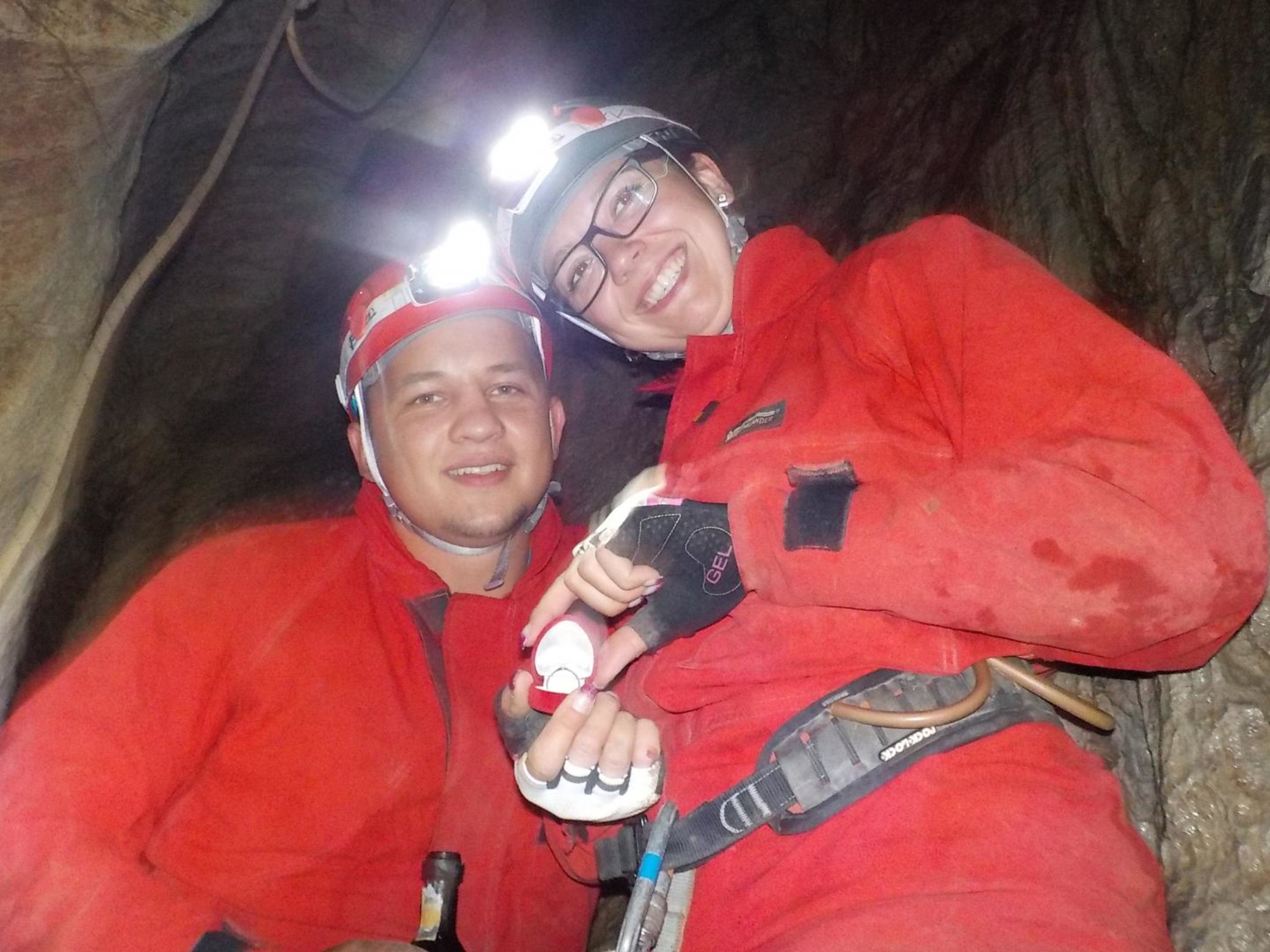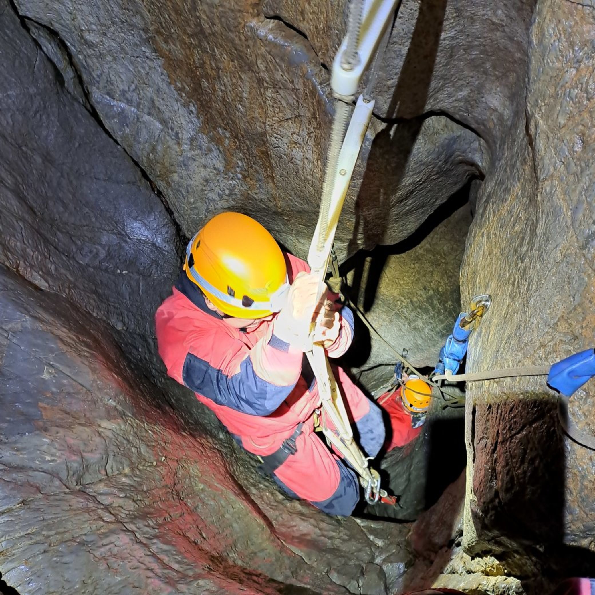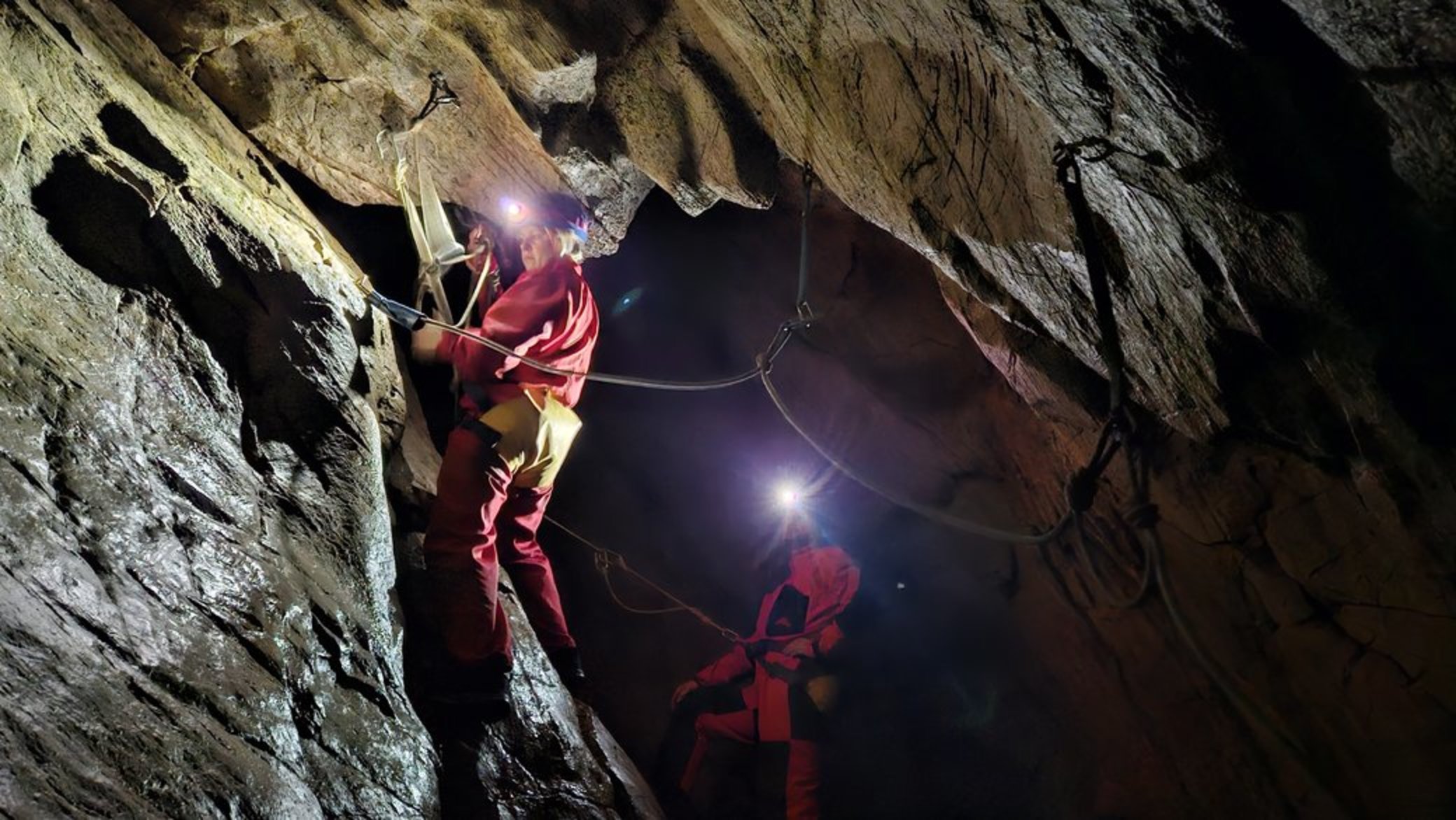 - Kompletní speleovybavení (přilba s čelovkou, kombinéza, sedací úvaz, jistící set s karabinami)