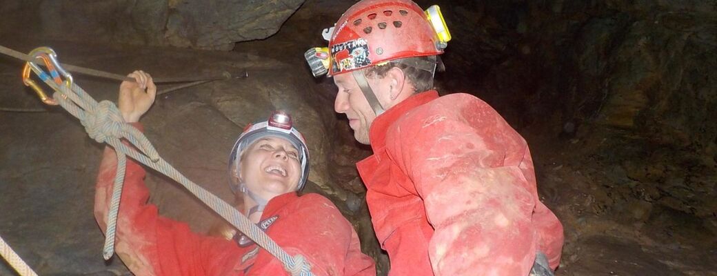 - Kompletní speleovybavení (přilba s čelovkou, kombinéza, sedací úvaz, jistící set s karabinami)