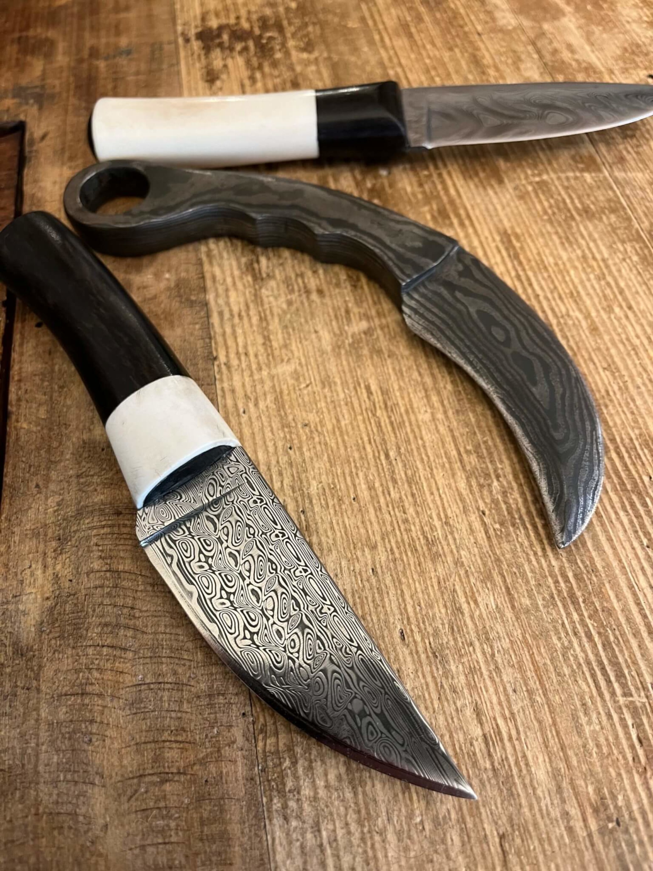 - Výroba nože z nerezového damašku (12 hodin) - Vytvořte si vlastní luxusní nůž ze švédské nerezové damaškové oceli DS93X, který se stane zlatým hřebem vaší sbírky. V první části kurzu si navrhnete tvar nože a zvolíte typ čepele. Následně si z prutu oceli, která vyniká prvotřídní kvalitou a nádhernou kresbou, vytvarujete čepel, vybrousíte ostří a aby damašková kresba vynikla naplno, ponoříte výkovek do kyseliny. Pak přijde na řadu výroba střenky. Na výběr máte z několika prémiových materiálů – stabilizované dřevo, kost, paroh. Aby váš nůž získal opravdu výjimečný vzhled, můžete materiály také kombinovat a vytvořit jedinečnou mozaiku.