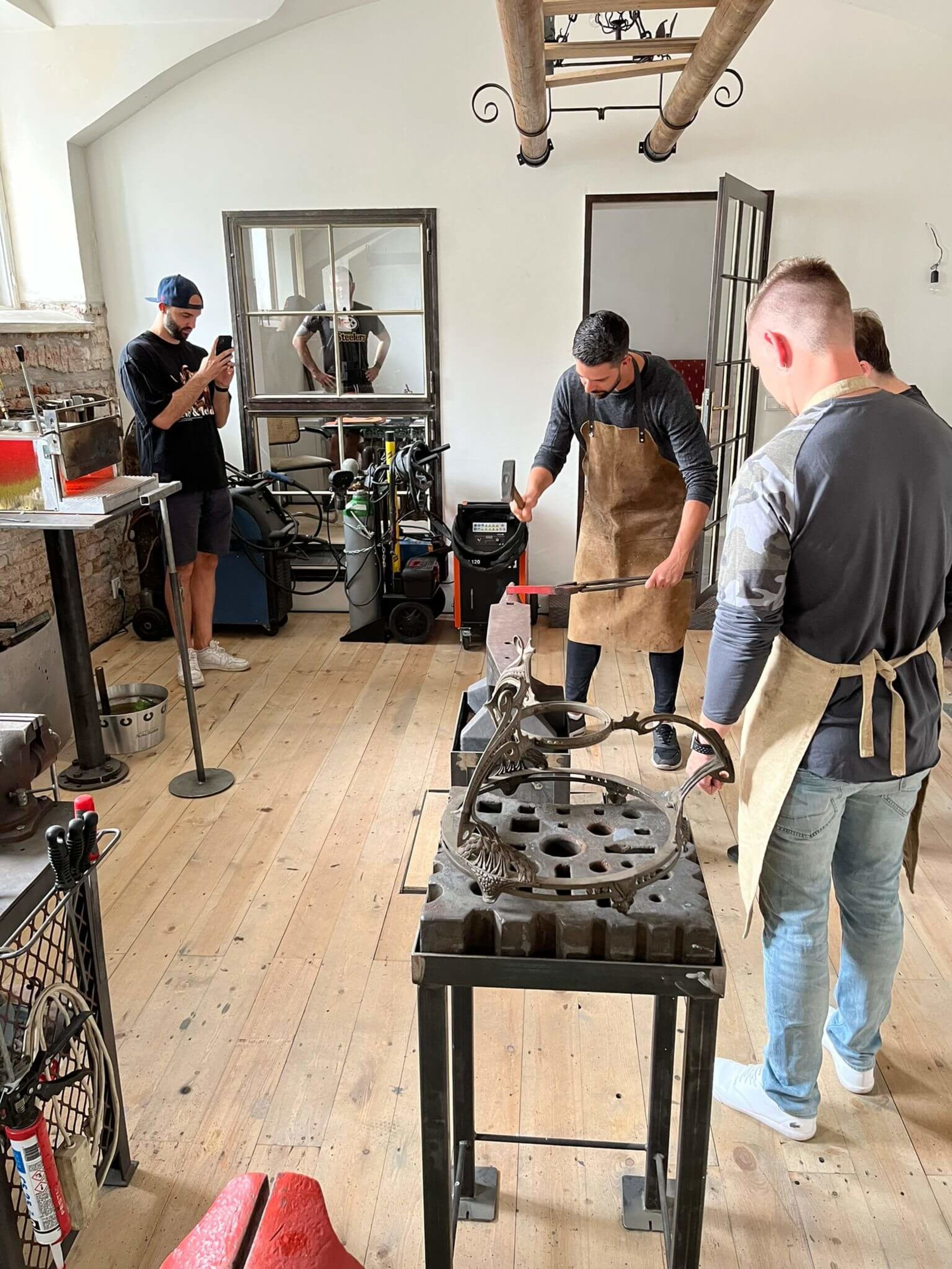 Po příchodu do kovárny vás přivítá zkušený kovář, který vás seznámí s bezpečnostními zásadami i samotným průběhem zážitku. Převlečete se do pracovního oblečení a dostanete ochranné pomůcky (brýle, rukavice) a kovářskou vestu. Dle zvolené varianty si vyrobíte vlastní nůž, sekeru, svícen nebo meč. Naučíte se rozžhavit železo do ruda, tvarovat ho kladivem na kovadlině, kalit i brousit. Vše probíhá pod vedením mistra kováře, který vás provede celým procesem od první jiskry až po finální úder kladivem. V průběhu si můžete odpočinout u drobného občerstvení (káva, čaj, voda, nealko) a sledovat ostatní u výhně. Na závěr si svůj vlastnoručně vykovaný výrobek odnesete domů – nebo si můžete přímo na místě pořídit ručně šité kožené pouzdro či domluvit výrobu rukojeti na míru.